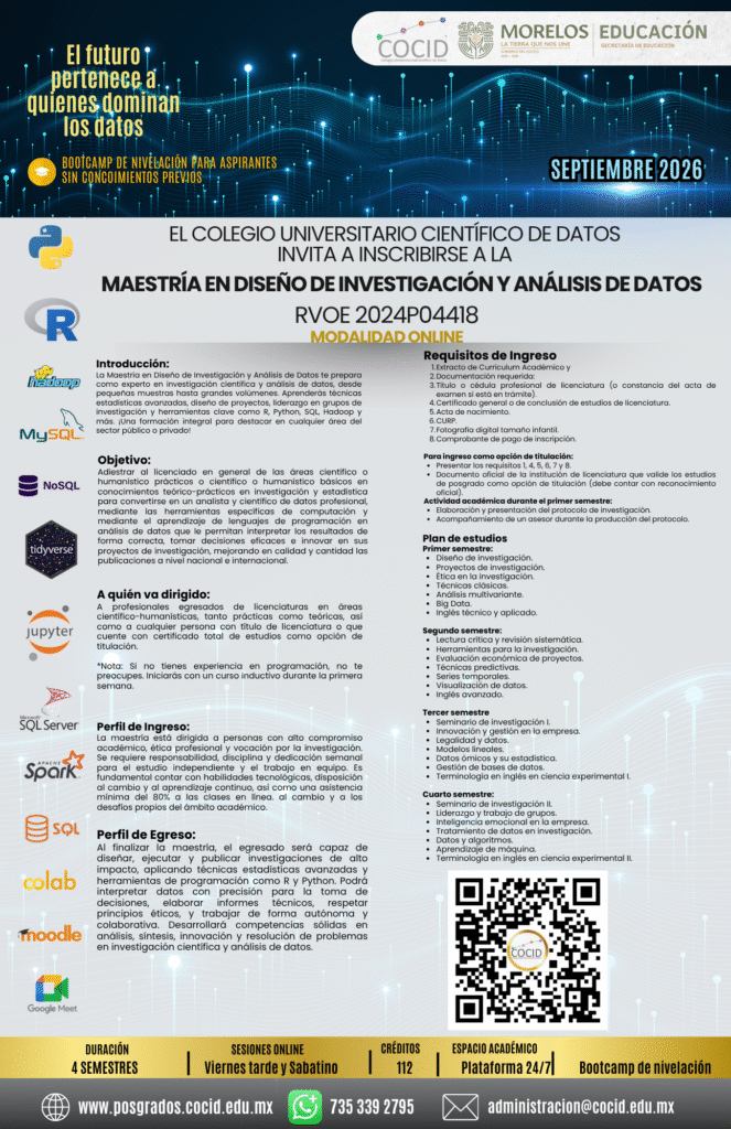Maestría en Diseño de Investigación y Análisis de Datos No. de RVOE 2024P04418